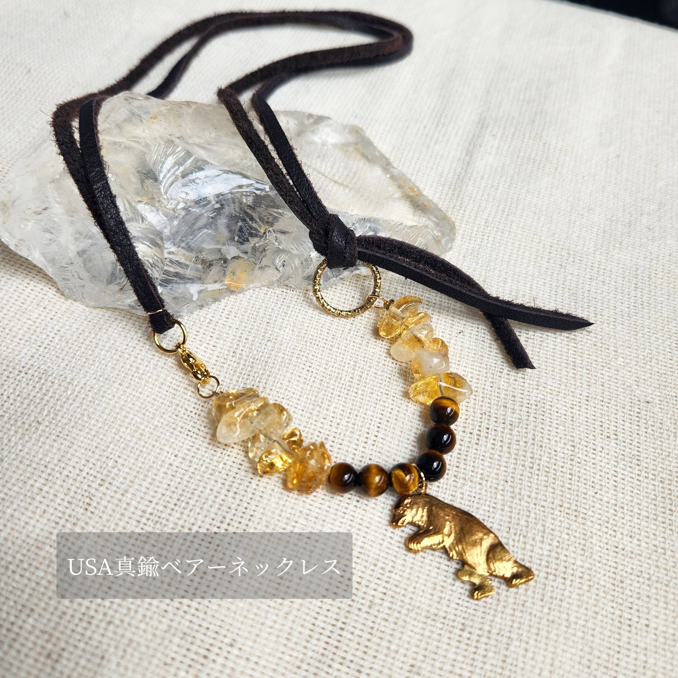 #タイガーアイ#シトリン#くま#真鍮#アクセサリー#天然石#USA#ディアスキン#ネックレス#ブレスレット#ハンドメイド#鹿革#愛媛#新居浜#西条#四国中央市#フロウ.スロウリィ.ソノベ