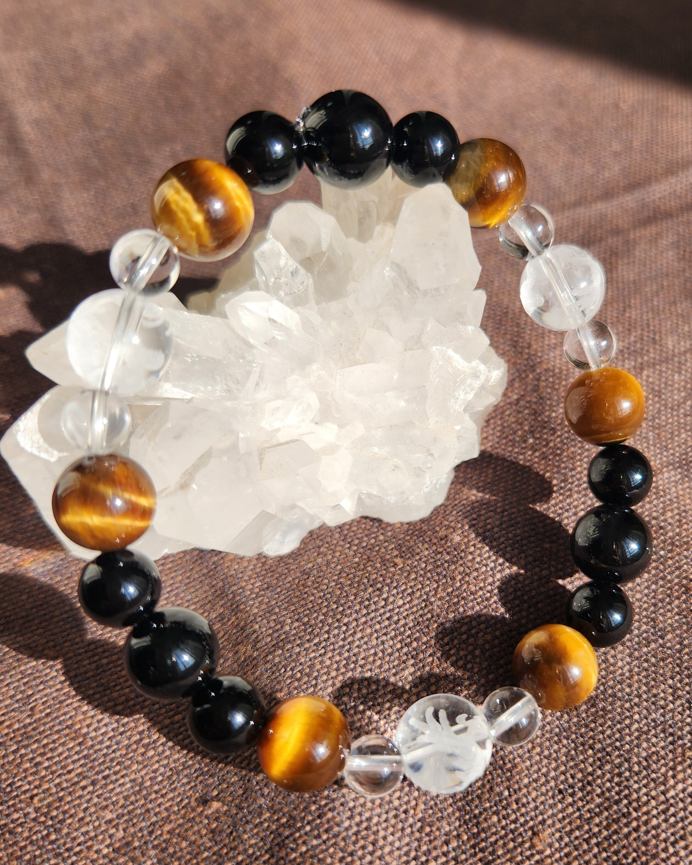 水晶に龍を彫りこんだビーズを組み合わせたブレスレット