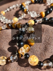水晶に龍を彫りこんだビーズを組み合わせたブレスレット