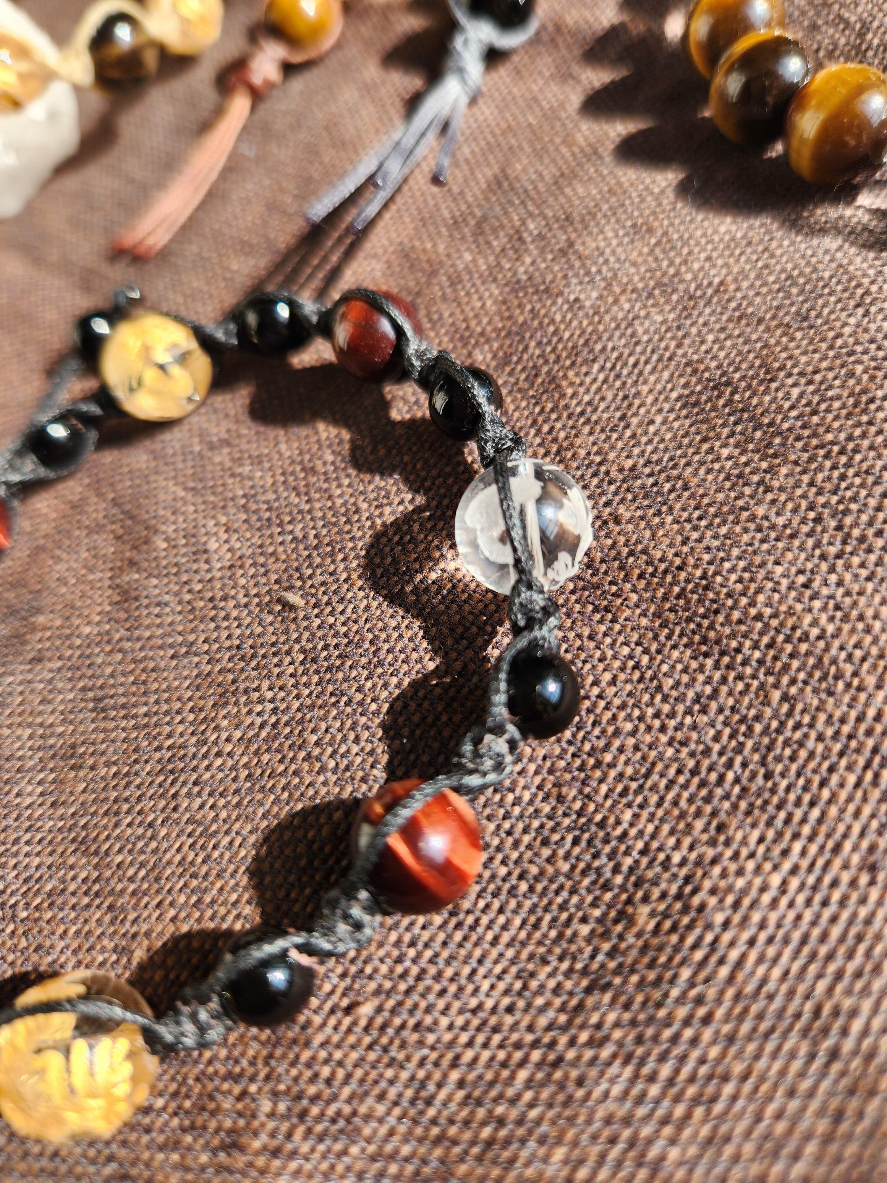 水晶に龍を彫りこんだビーズを組み合わせたブレスレット