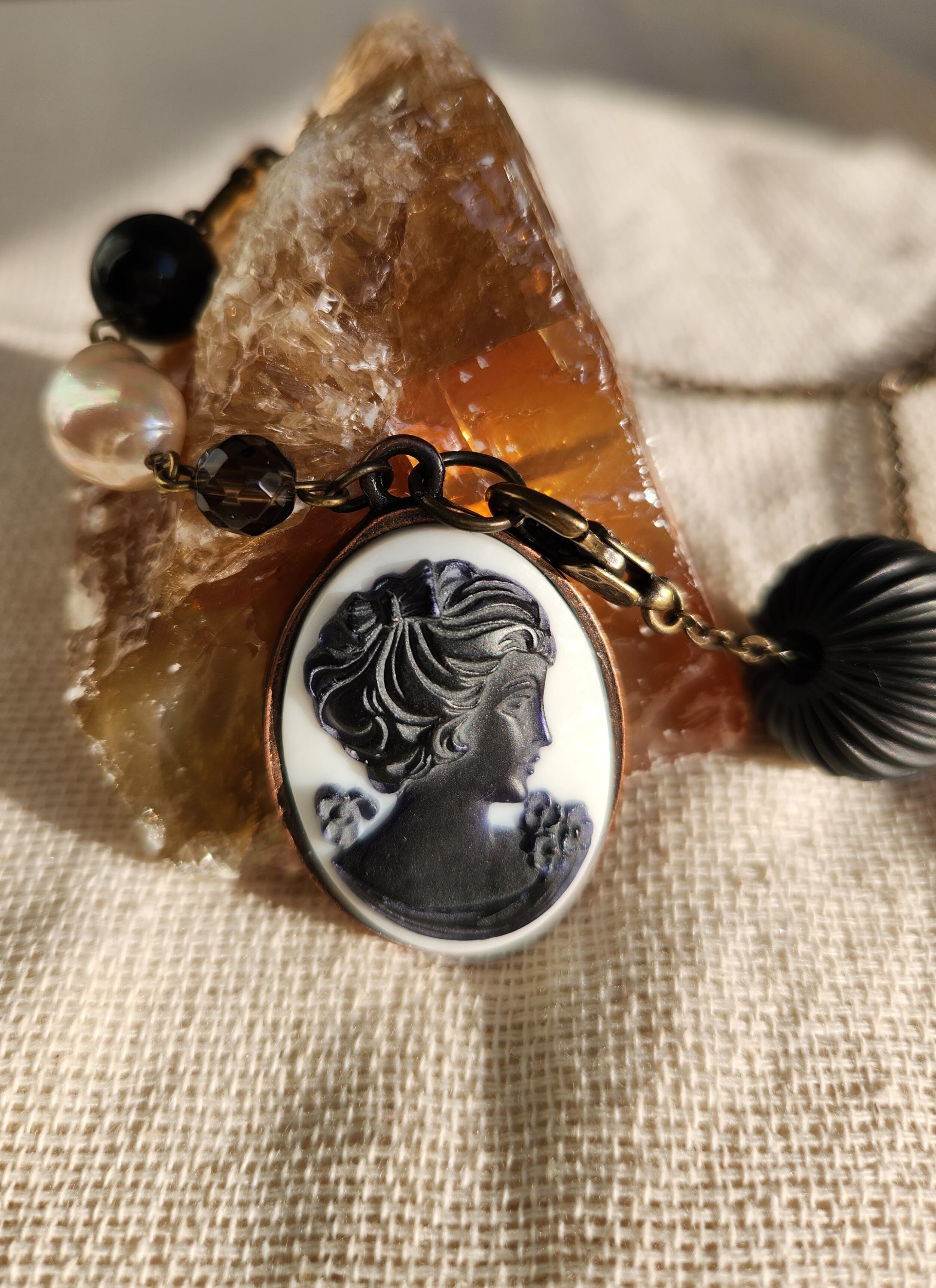 ブラックとホワイトのコントラストが映えるカメオが美しいオリジナルデザイン…。