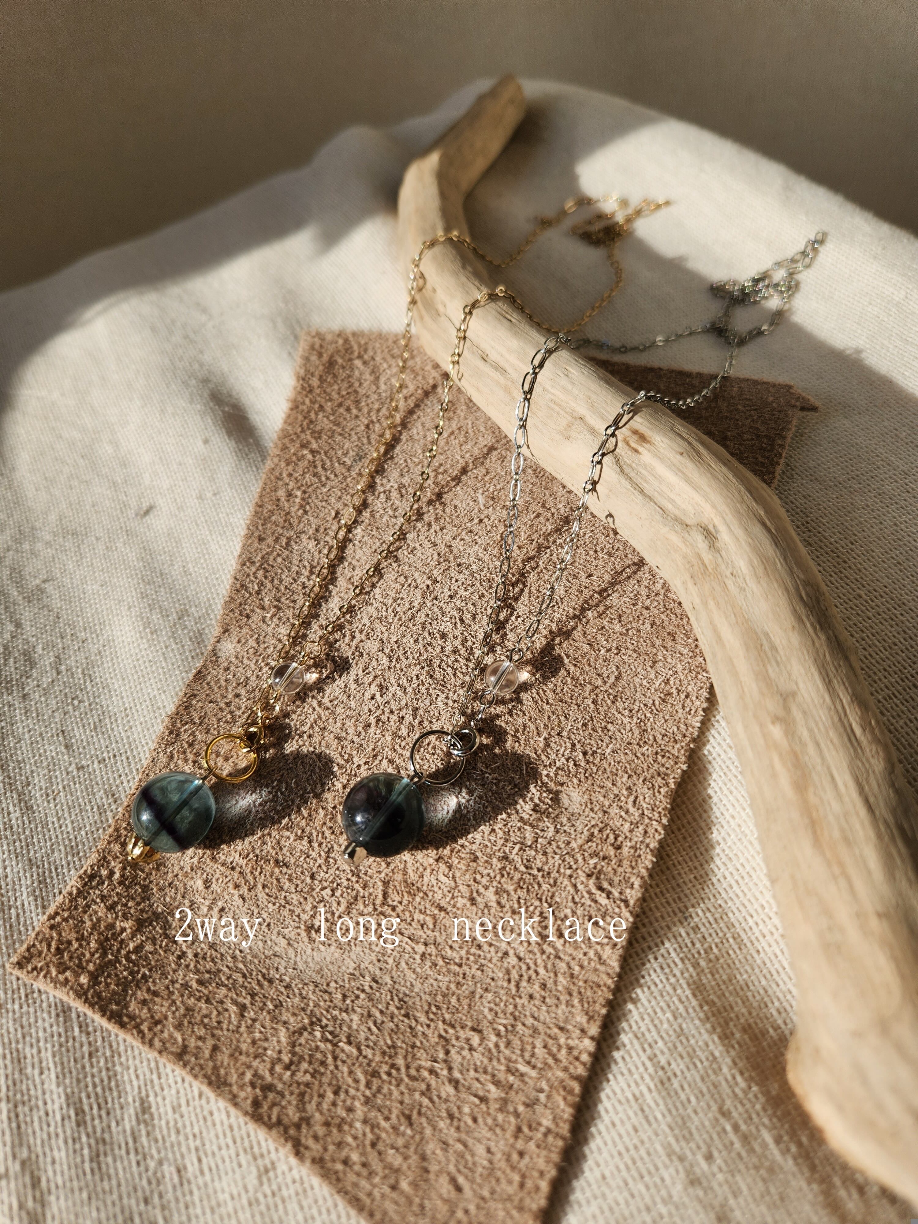 水晶ビーズをアクセントに2通りの着け方ができます。