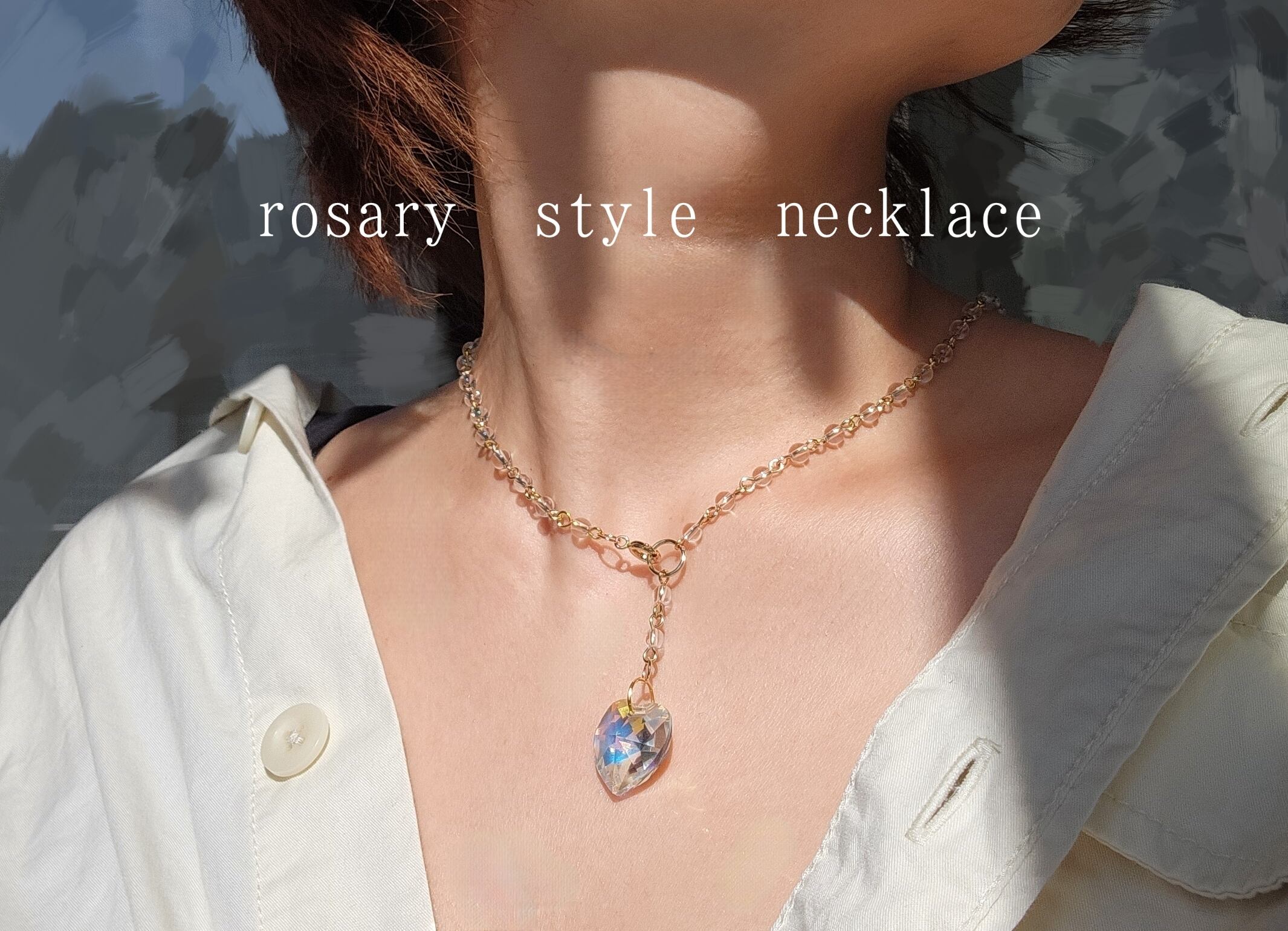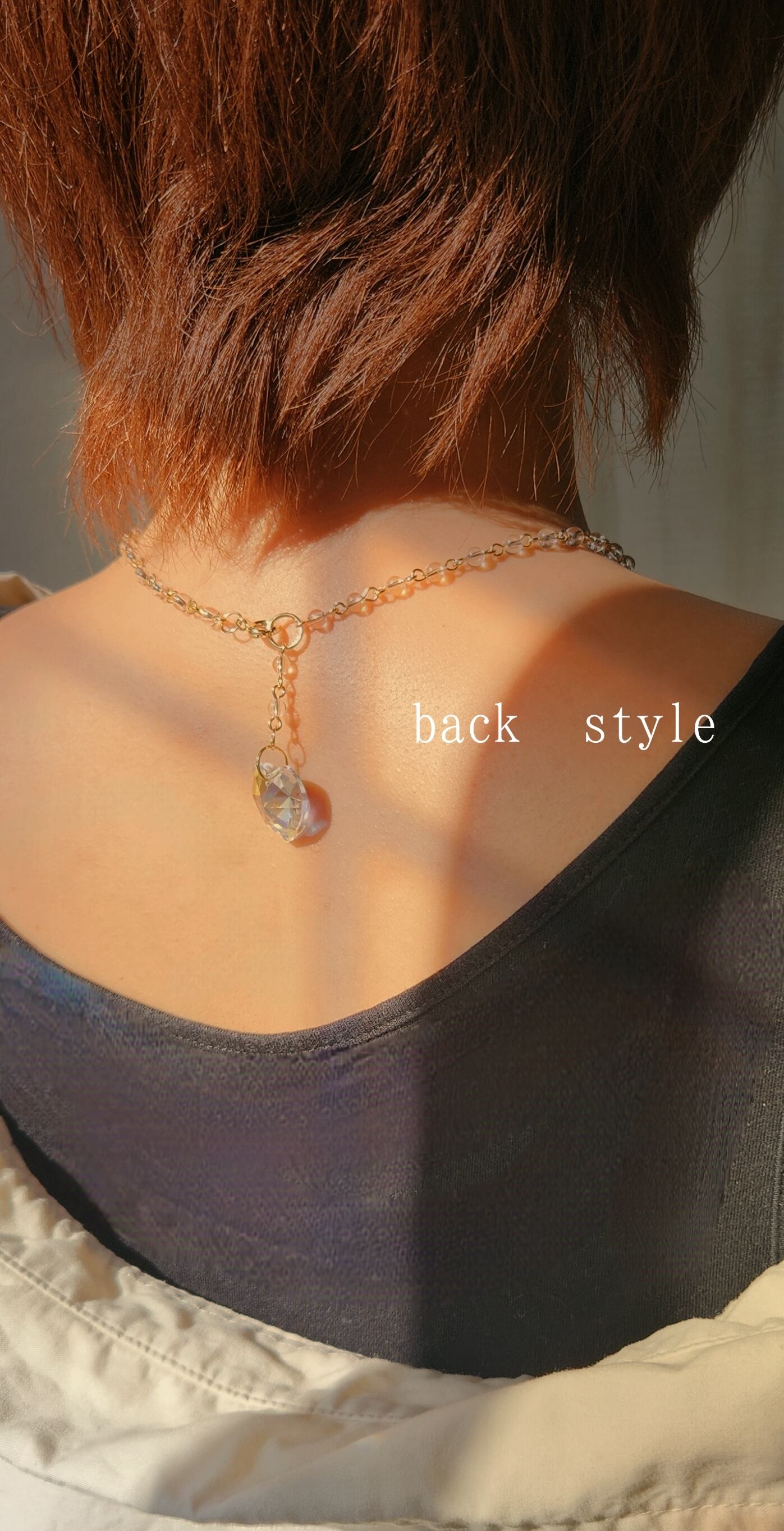 水晶を繋ぎ合わせたチェーンでネックレスに仕上げました。