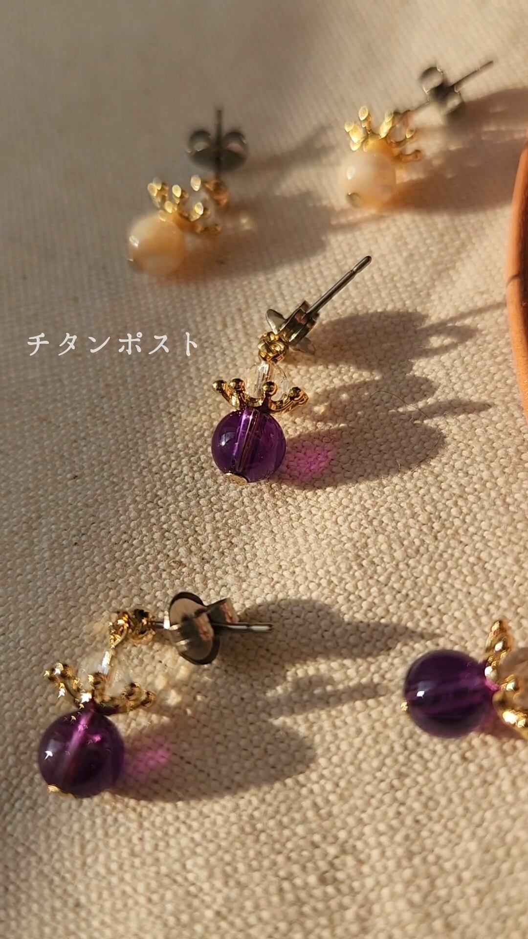 #アメジスト #マザーオブパール #ピアス #イヤリング #チョーカー #レザーネックレス #おそろい #水晶#ミルククラウン #愛媛 #ハンドメイドアクセサリー #天然石