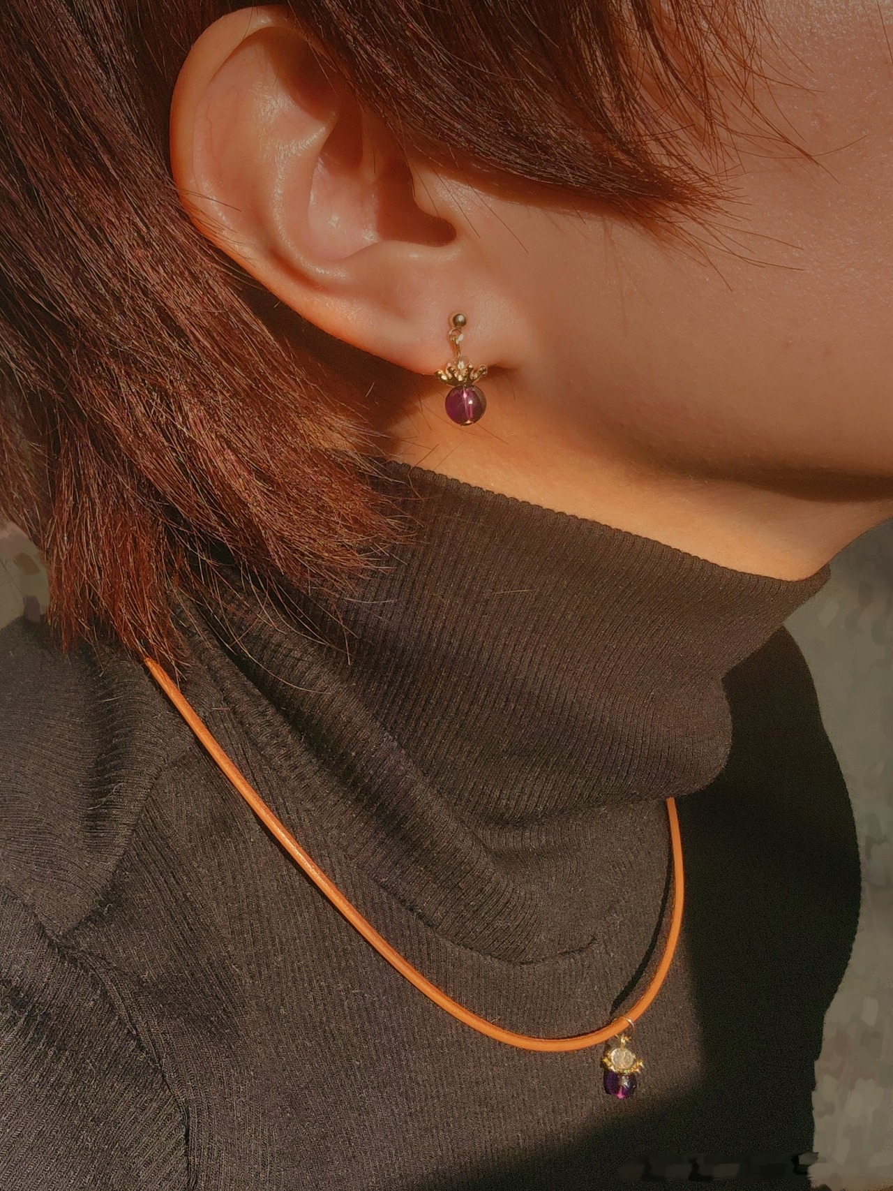 #アメジスト #マザーオブパール #ピアス #イヤリング #チョーカー #レザーネックレス #おそろい #水晶#ミルククラウン #愛媛 #ハンドメイドアクセサリー #天然石